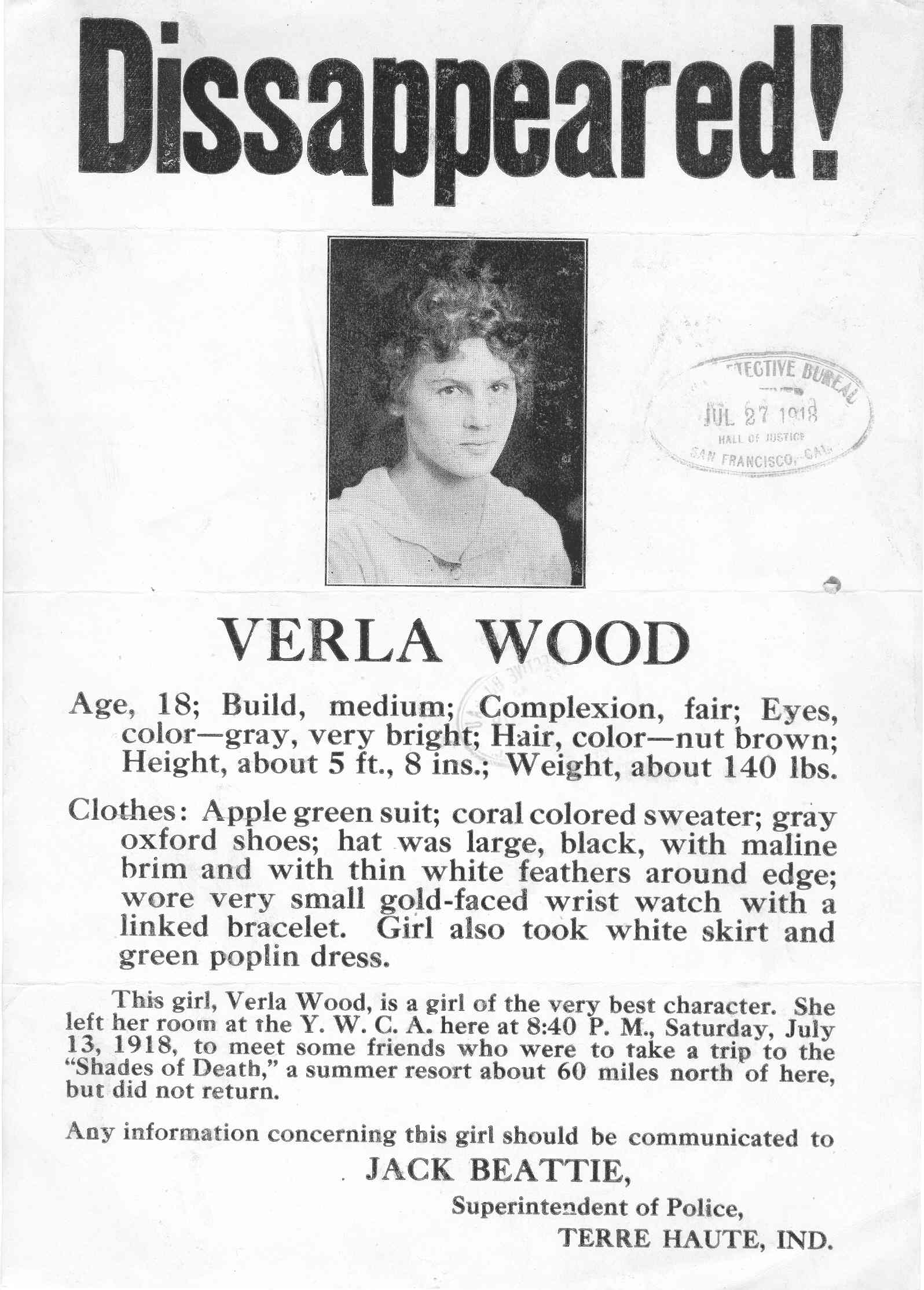 Teen-age girl vanished on way to "Shades of Death." Verla